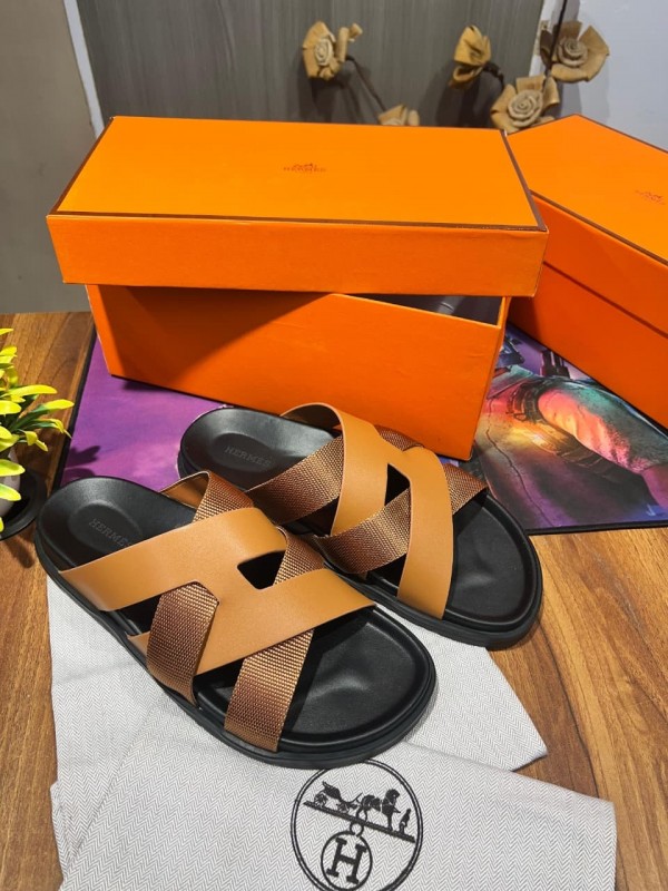 Hermes H CrossOver Premium Tan Slides